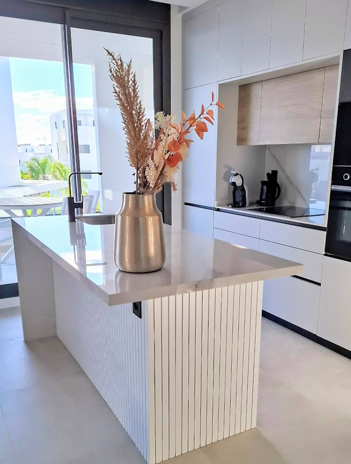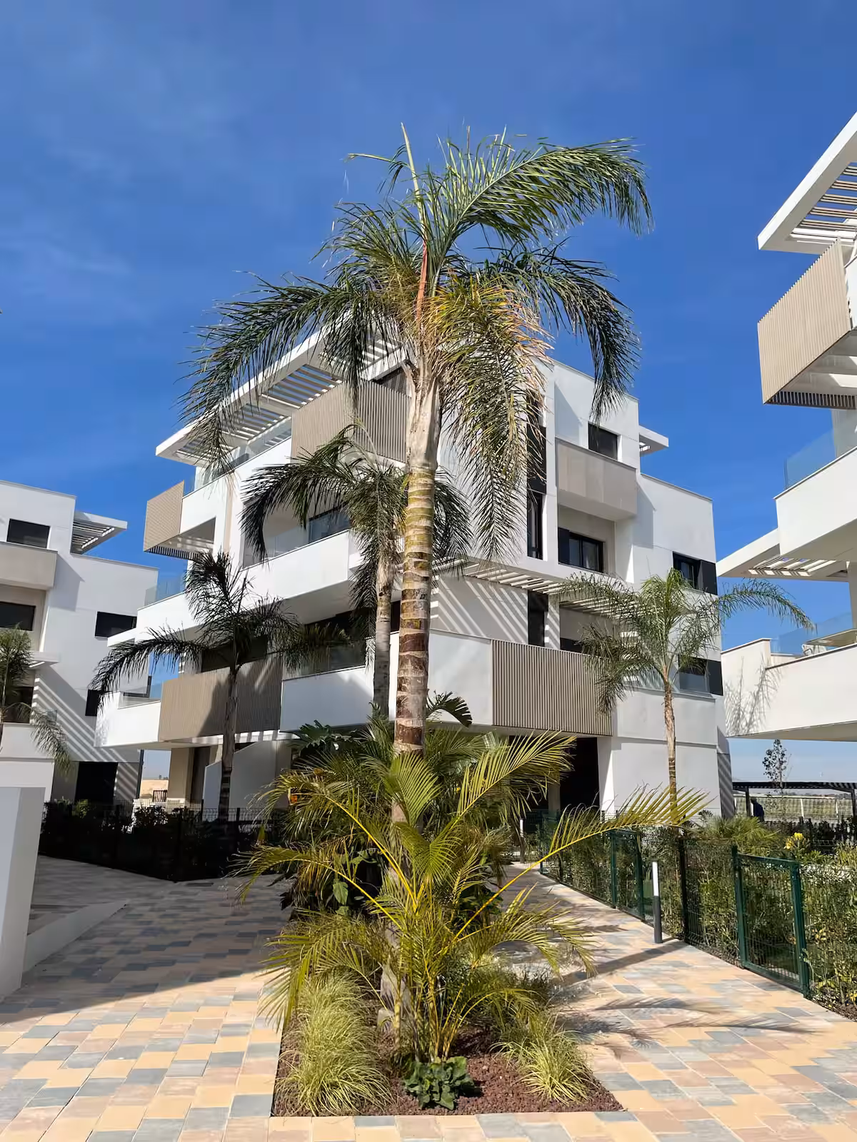 Our newly built apartment features 2 comfortable bedrooms, 2 modern bathrooms and a bright and luxurious living room with a fully equipped open kitchen. Enjoy the sunny terrace, refreshing swimming pool and the convenience of a private parking space.